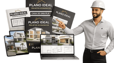 Você receberá mais de 60 projetos arquitetônicos completos, desenvolvidos por um Engenheiro Civil, além de 5 ferramentas exclusivas (Guia Prático de Economia Inteligente, Planilha de Controle Inteligente e Plano de Obra sem Caos) e 6 bônus especiais para garantir economia, organização e segurança na sua construção.